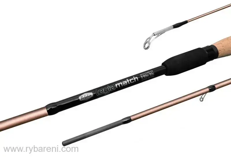 Delphin LEGIA Match je vyrobena z čistého 24T karbonu. Štíhlý průměr blanku u rukojeti umožnil vytvořit výbornou, plně parabolickou akci prutu. Taková akce v kategorii „match“ je obzvláště výhodná pro přesné nahazování nástrahy na lovné místo. Zároveň takové postupné ohýbání blanku v celé jeho délce dovoluje použití velmi tenkých návazcový vlasců bez obavy z jejich trhání během záseku, či zdolávání ryby. Blank prutu je osazen příjemnou rukojetí, která je vzhledem k praktickému využívání tvořena z kombinace materiálu EVA a korku. Nadčasový design byl doplněn vysokými očky se SIC výplní, kompletně designových ve stříbrné barvě. Delphin Legia Match se dodává na trh v délkách 390 a 420cm.